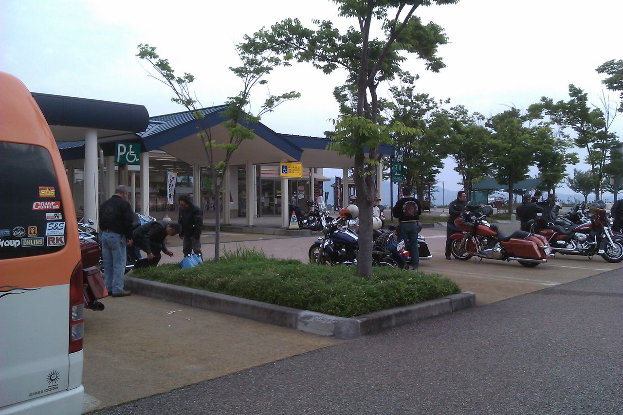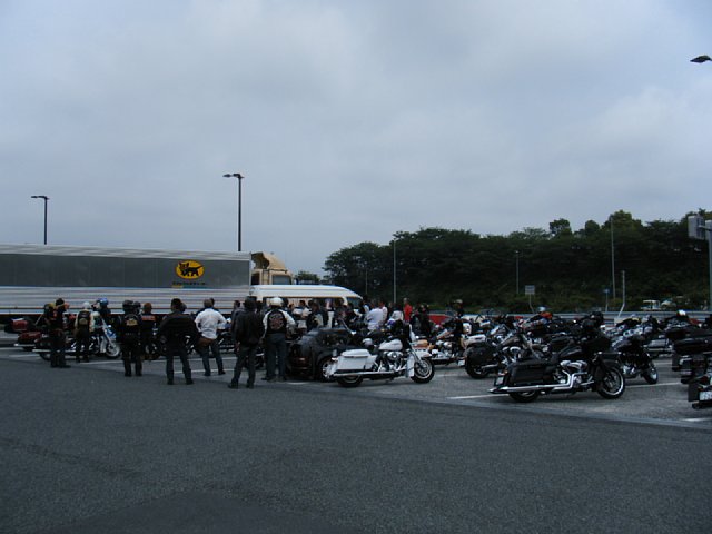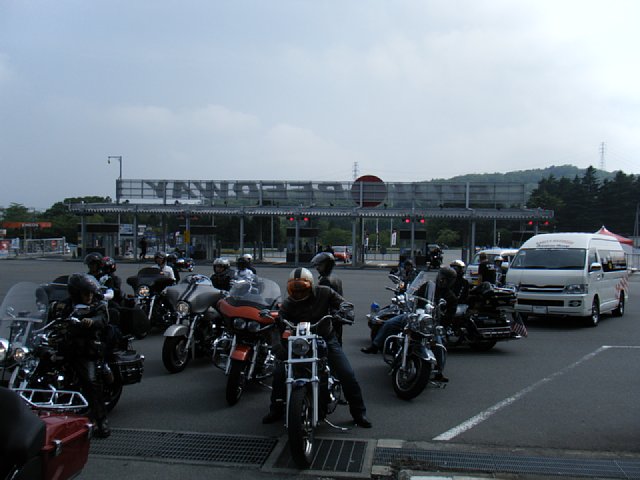 3県合同入場をするために、60台ほどのハーレーダビッドソンが集まったようです。高速道路が延々とハーレーの列になりました^^;