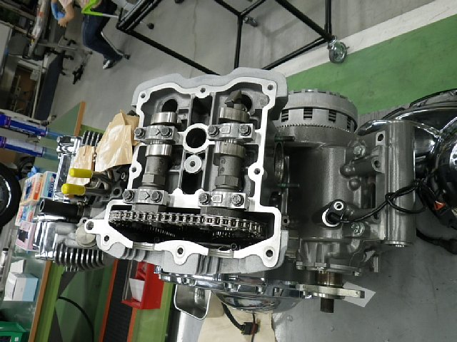 これはDOHCで国産の一般的なタイプと一緒ですからヘッドの上にカムがいます。