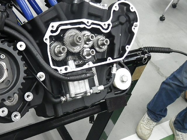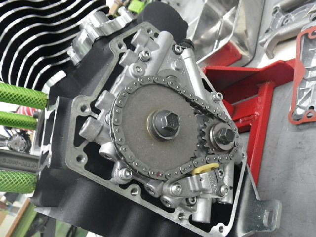 これははじめからバルブごとにカムがギヤ経由でリンクされてます。4カムはスポーツスターのエンジンの最大の個性ですね。オイルポンプも昔からギヤ駆動なんですね。