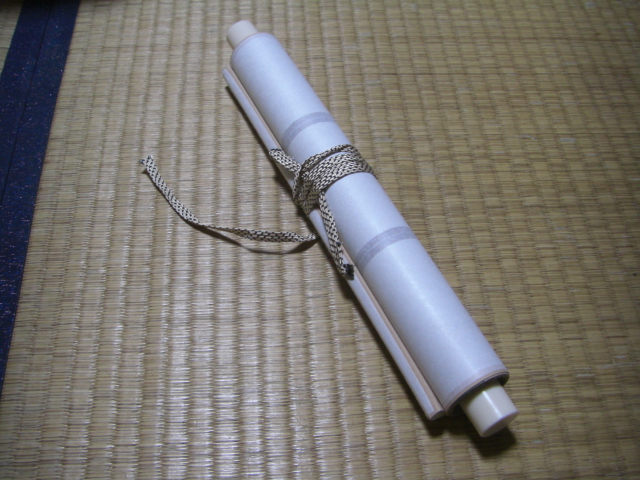 ローン明細書を貼り付けるために無地の掛け軸を用意しました。