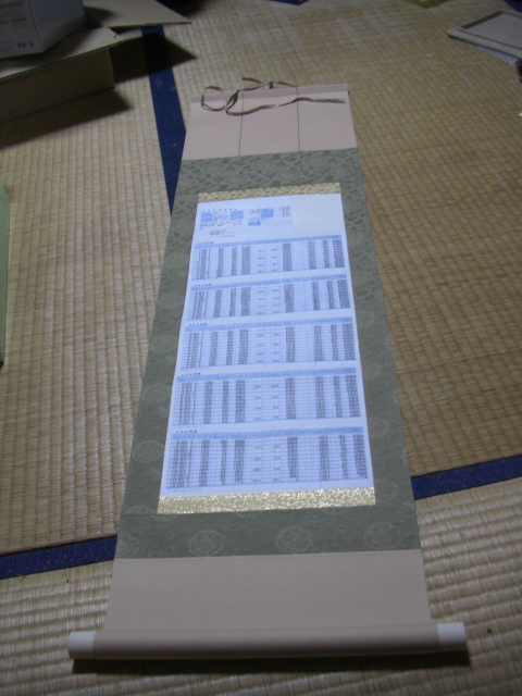 ローン明細書は少し大きめなのでコピーして掛け軸の幅に切り取ったものを貼り付けました。