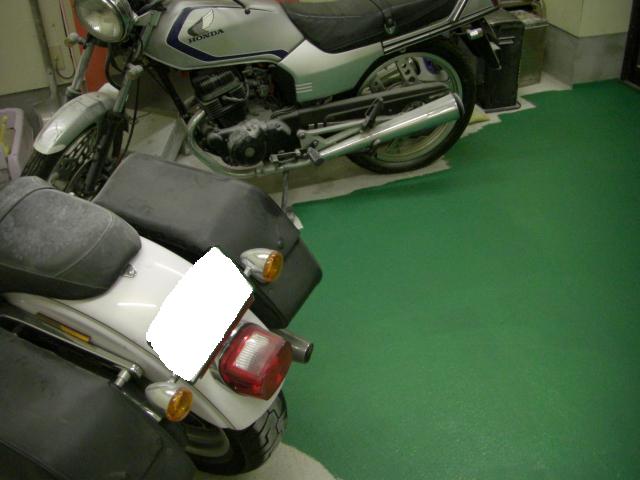 さて、ガレージの塗装直後にハーレーをしまって置いたので、きょう動かしたらべりべりってORZ