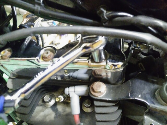 *エンジン関係のボルト緩めるときは一か所だけ一気に緩めて外していくと、組付けてある部品が外す段階でゆがむ場合があるので(僕は未経験ですが)サービスマニュアル通りに徐々に緩めます。