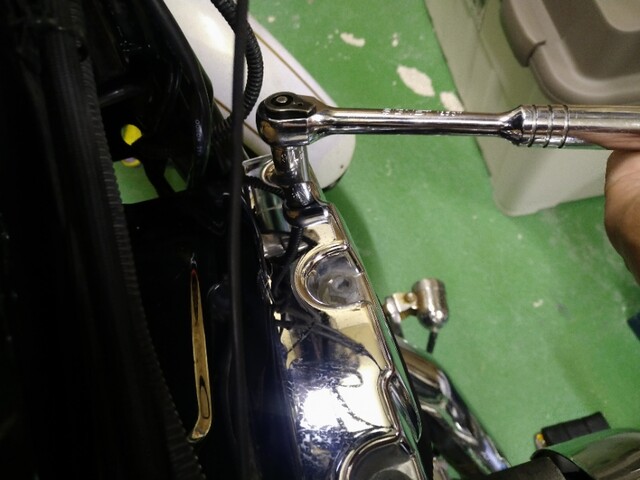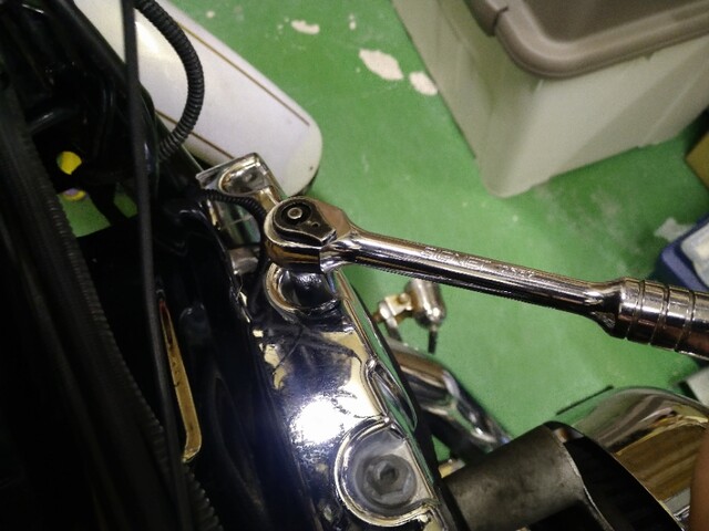 最後にフランジナットを締め付けてスタッドボルト折れ応急修理完成!