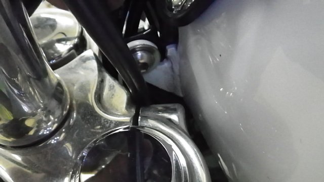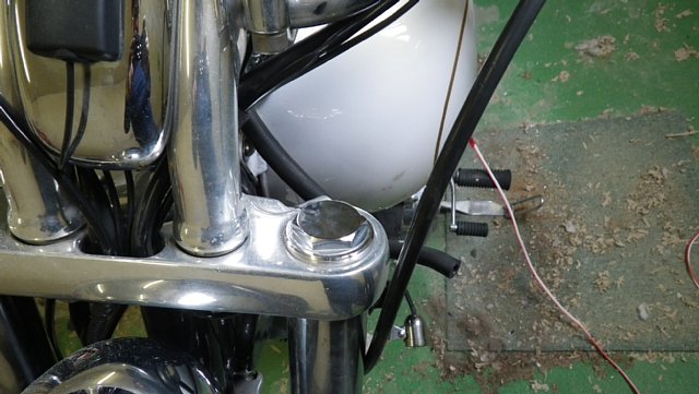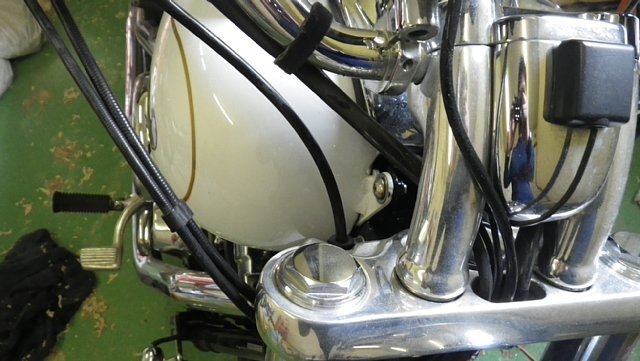 ハーレーダビッドソンのスロットルワイヤーですが、トリプルツリーの外側に回してやらないとハンドル切った時ワイヤーがタンクとトリプルツリーに挟まれます。