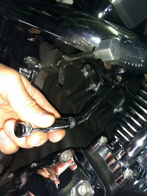 リヤのエキパイを外さなくてもO2センサーの取り外しができるO2センサーレンチが10年ぶりに活躍!