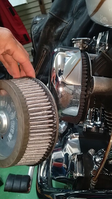 ハーレーダビッドソンのカムシャフトをS&S551に交換後、ベースマップもノーマルカムからプロファイルの近いレッドシフト525へ入れ替える時点で気が付いた エアクリーナー大きすぎなんじゃ?疑惑