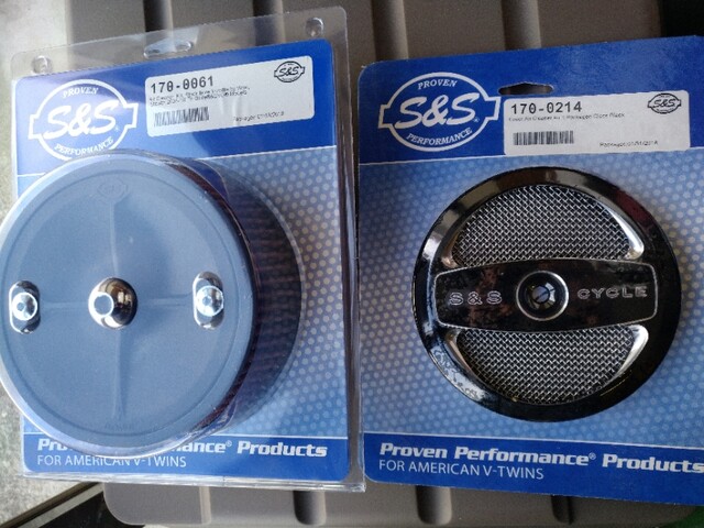 新品正規品/S&S マフラー本体 ステージII パフォーマンスキット 08-16ツアラ 551CE ブラック エス&エス バイク←こんなかんじのキットに付属していた電子制御スロットル用のエアクリーナーセットです。