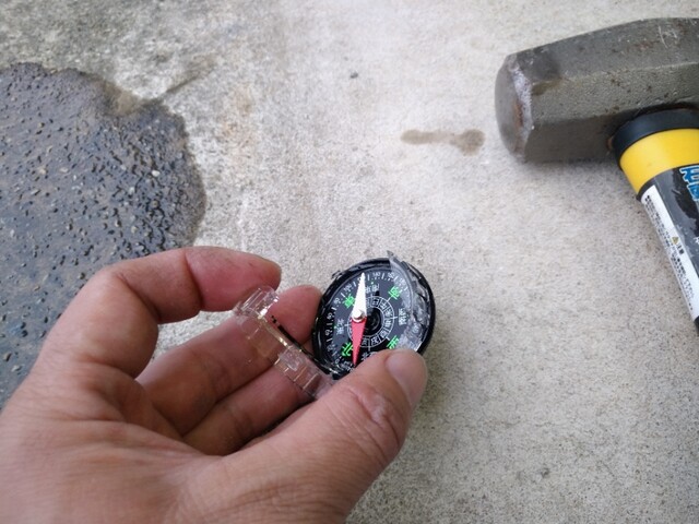 ダイソーで売っていた方位磁石をハンマーでたたき割ります!