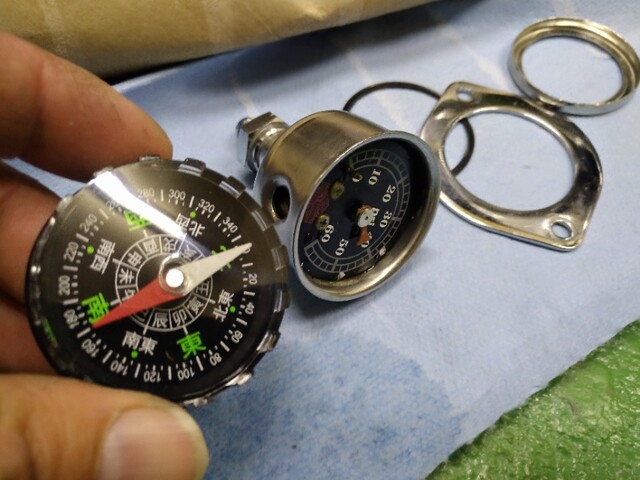 液体封入タイプなので、ハーレーの油圧計みたいにグリセリンかと思ったら、中身のにおいはどう見てもただの機械油・・・・
