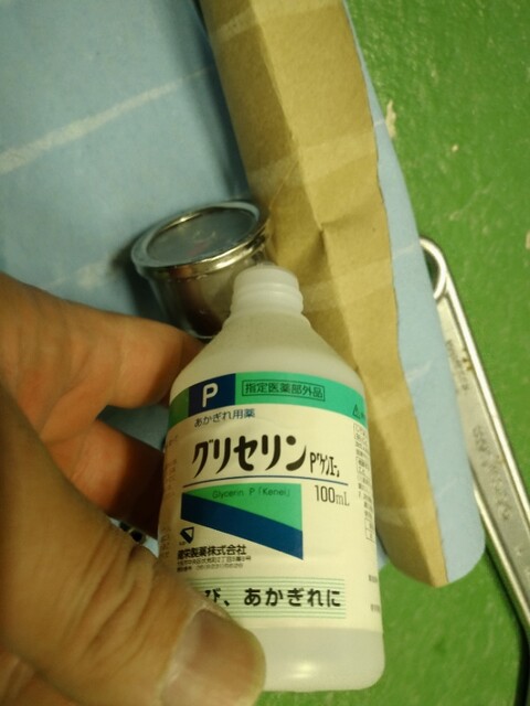 接着剤が硬化したらグリセリンの封入液をサイドの穴からチャージして蓋をします。
