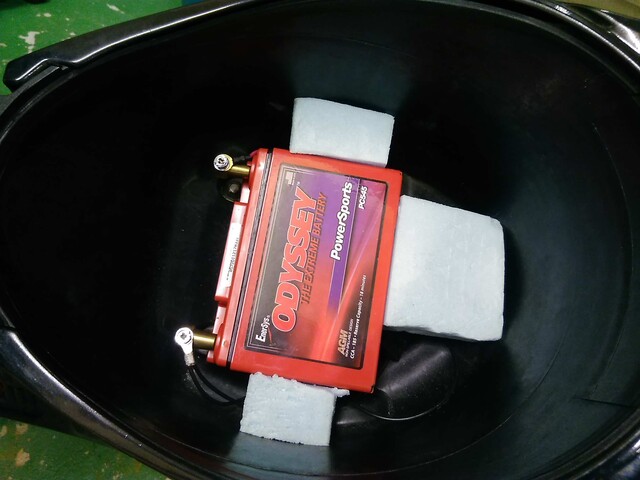 実はすでにスクーター用のバッテリーとして移設済み・・・・横置き出来るドライバッテリーの利点がここで初めて生かされましたw