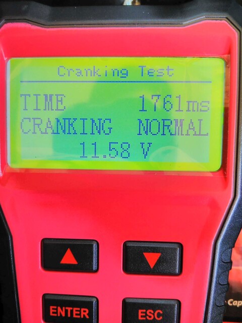 手持ちのバッテリーテスターはクランキングのチェックもできるのでそれも行います。
